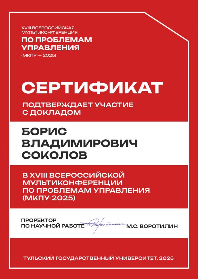 Professor Boris V. Sokolov participated in the MKPU Conference held in Tula, where he delivered both a plenary and several sectional presentations.
